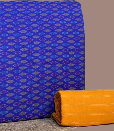 Blue – 2pc CottonSilk Soft Ikkat Top and Handloom Soft Cotton Bottom Fabric Set