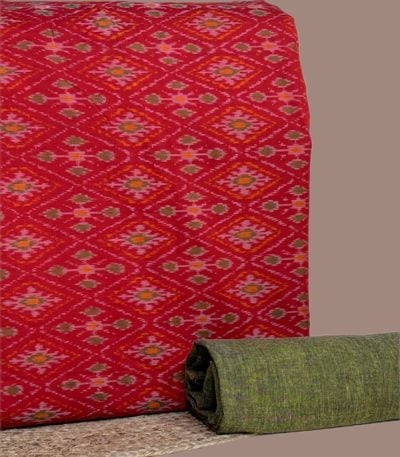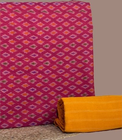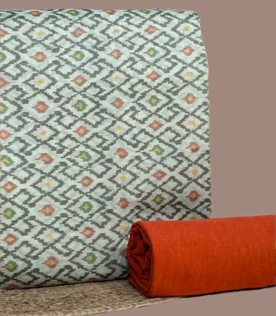 Orange – 2pc CottonSilk Soft Ikkat Top and Handloom Soft Cotton Bottom Fabric Set