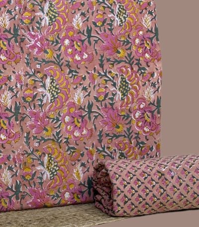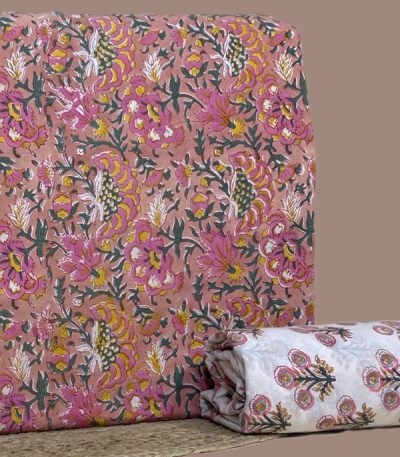 Pink – 2pc Pure Soft Cotton Blockprinted Top and Bottom Fabric Set