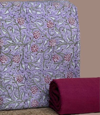 Purple – 2pc Pure Soft Cotton Top and Handloom Cotton Bottom Fabric Set