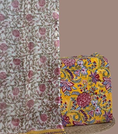 Yellow – 2pc Kota Doria Dupatta and Pure Soft Cotton Blockprint Top Fabric Set