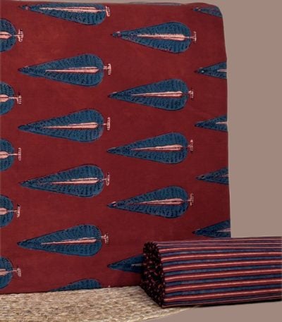 Red – 2pc Ajrakh HandCrafted Cotton Top and Bottom Cotton Fabric Set