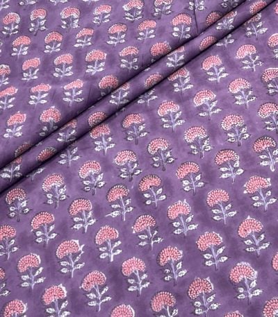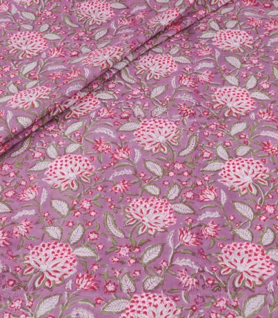Pre-Cut 0.65m Lilac Purple Floral Handblock Printed 100% Pure Soft Cotton Fabric