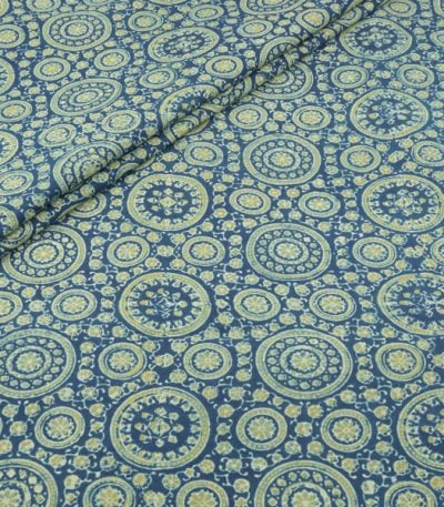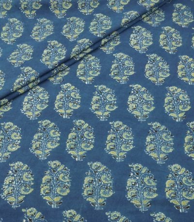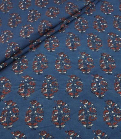 Natural Indigo Blue Handblock Ajrakh Printed Cotton Fabric