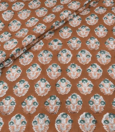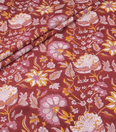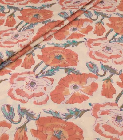 Pre-Cut 2.10m Tangerine Dream Orange Floral Handblock Printed 100% Pure Soft Cotton Fabric