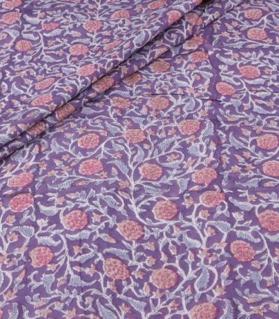 Pre-Cut 0.60m Plum Purple – Floral Handblock Printed 100% Pure Cotton Fabric