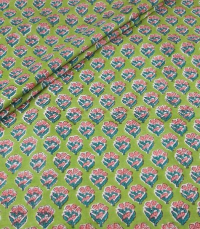 Pre-Cut 2m Citrine Yellow Floral Handblock Printed 100% Pure Soft Cotton Fabric