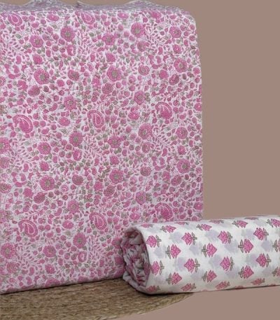 2pc Pure Soft Cotton Blockprinted Top and Bottom Fabric Set