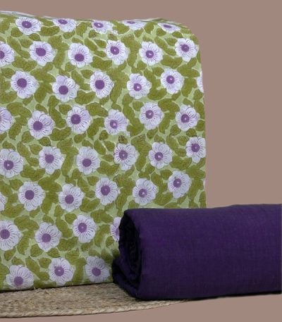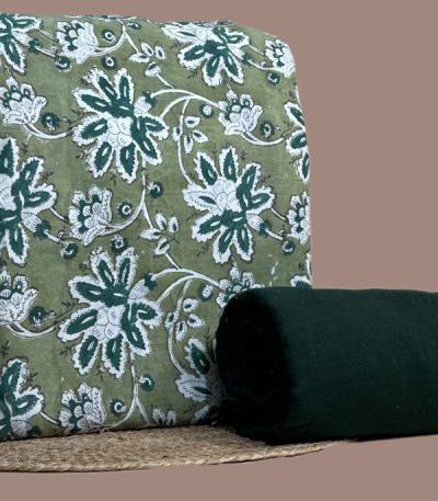 Green – 2pc Pure Soft Cotton Top and Handloom Cotton Bottom Fabric Set