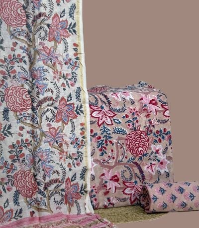 2pc Pure Soft Cotton Blockprinted Top and Bottom Fabric Set