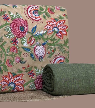 Green – 2pc Pure Soft Cotton Top and Handloom Cotton Bottom Fabric Set
