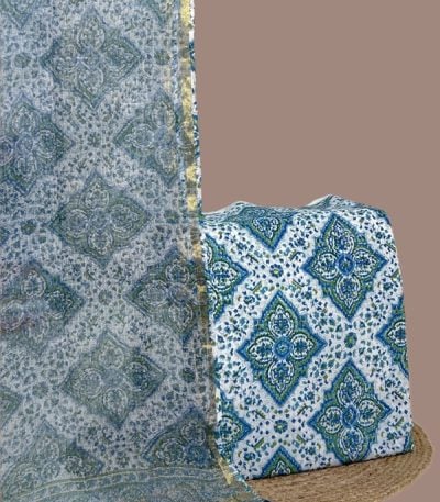 2pc Kota Doria Dupatta and Pure Soft Cotton Blockprint Top Fabric Set