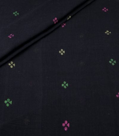 Natural Black Woven Design Flowy HandLoom Pure Soft Cotton Fabric