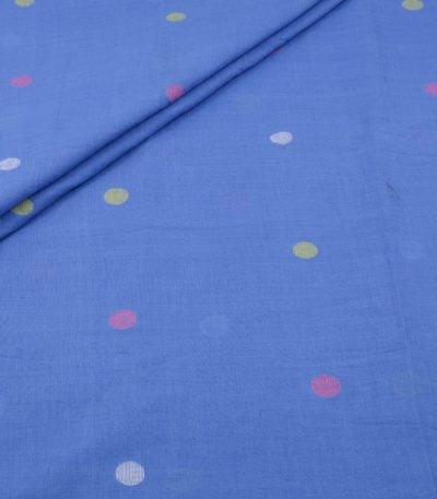 Cornflower Blue Woven Design Flowy HandLoom Pure Soft Cotton Fabric