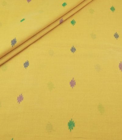 Lemon Yellow Woven Design Flowy HandLoom Pure Soft Cotton Fabric