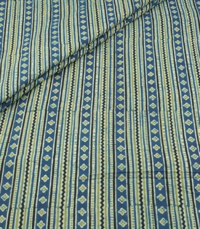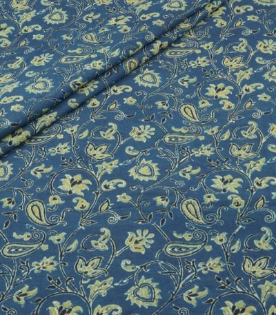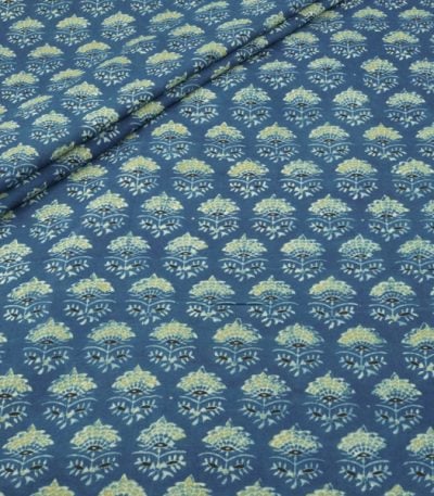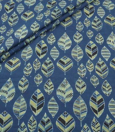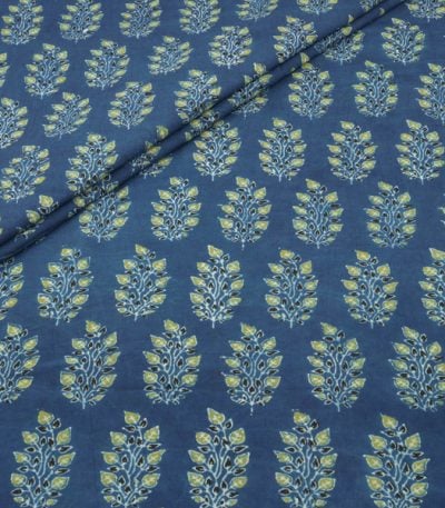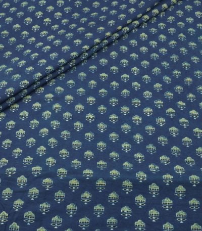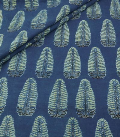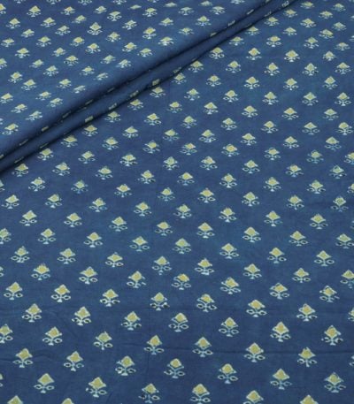 Natural Indigo Blue Handblock Ajrakh Printed Cotton Fabric