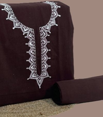 2Pc Handloom Embroidered Neck Design Soft Cotton Top(2.5m) Bottom(2.5m) Fabric Set