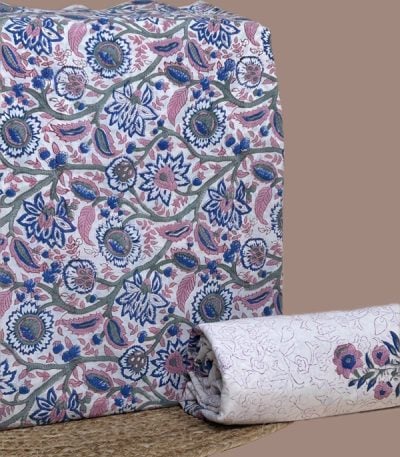 2.5mtr Each – HandBlock Printed Pure Soft Cotton Top Bottom Fabric Set