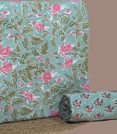 2pc Pure Soft Cotton Blockprinted Top and Bottom Fabric Set