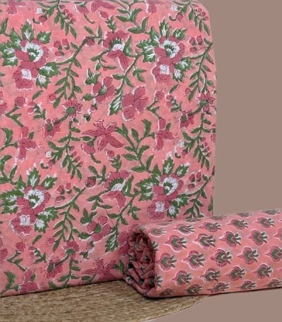 2pc Pure Soft Cotton Blockprinted Top and Bottom Fabric Set
