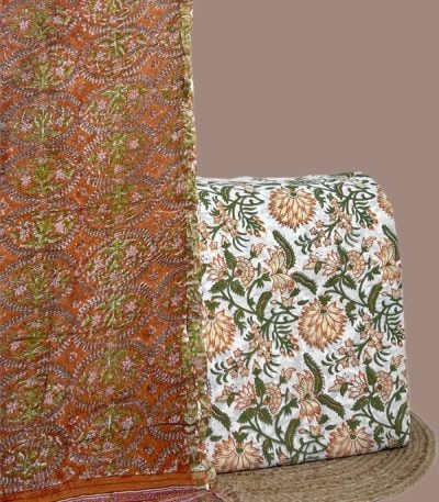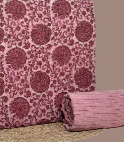 2pc Bagru HandCrafted Top and Handloom Stripes Soft Cotton Bottom Fabric Set