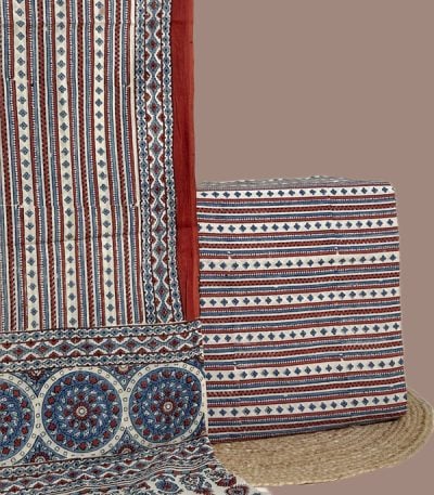 2pc Ajrakh HandCrafted Cotton Dupatta and Top Cotton Fabric Set