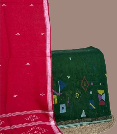 2pc Handloom Cotton Dupatta and Handloom Ikkat Top Fabric Set