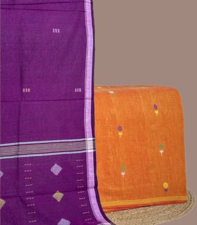 2pc Handloom Cotton Dupatta and Jamdani Intricate Woven Border Top Fabric Set