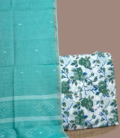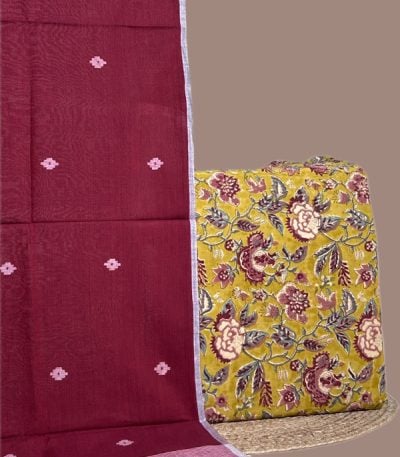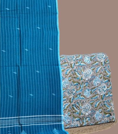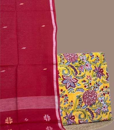 2.5mtr Each – Handloom Cotton Dupatta with HandBlock Printed Pure Soft Cotton Top Fabric Set