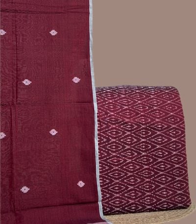 Maroon – 2pc Handloom Cotton Dupatta and Handloom Ikkat Top Fabric Set