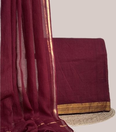 Maroon – 2pc Kota Doria Dupatta and Mangalgiri Zari Border Handwoven Pure Cotton Set