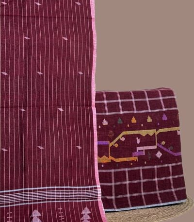 Maroon – 2pc Handloom Cotton Dupatta and Jamdani Intricate Woven Border Top Fabric Set