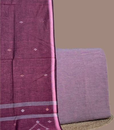 Purple – 2pc Handloom Cotton Dupatta and Handloom Woven Stripes Cotton Top Fabric Set