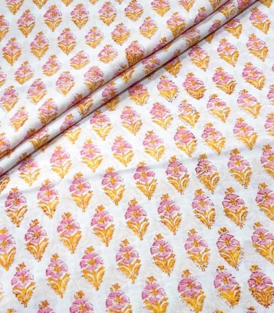 White Floral Handblock Printed 100% Pure Soft Cotton Fabric