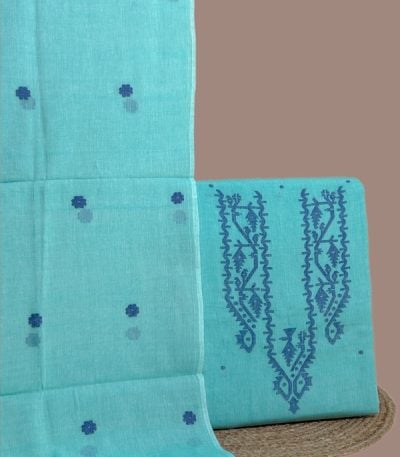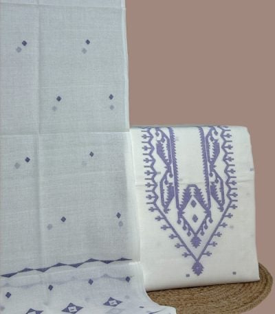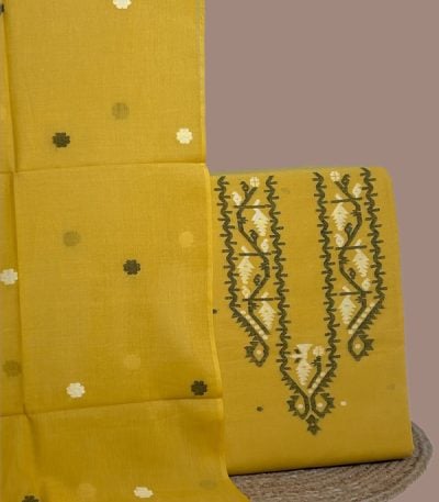 3Pc (3mtr Top) Handloom Woven Neck Design Soft Cotton Top(3m) Fabric Set