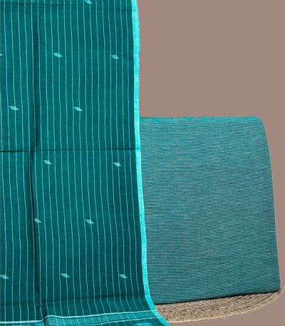 Green – 2pc Handloom Cotton Dupatta and Handloom Woven Stripes Cotton Top Fabric Set