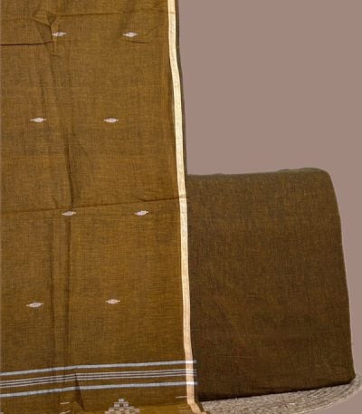 Brown – 2pc Handloom Cotton Dupatta and Handloom Soft Cotton Top Fabric Set