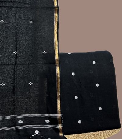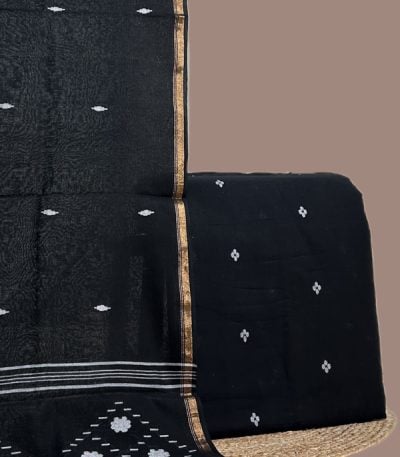 Black – 2pc Handloom Cotton Dupatta and Handloom Woven Design Top Fabric Set