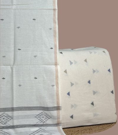 White – 2pc Handloom Cotton Dupatta and Handloom Woven Design Top Fabric Set