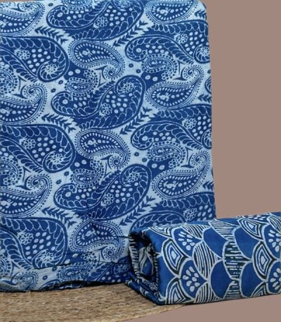 Blue – 2pc Modal Silk Blockprint Top and Bottom Fabric Set