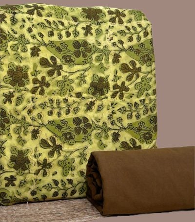Yellow – 2pc Modal Silk Blockprint Top and Plain Dyed Cotton Bottom Fabric Set