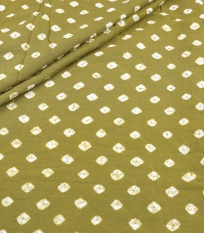 Olive Green Bandhani Tie Dye 100% Pure Soft Cotton Satin Finish Fabric