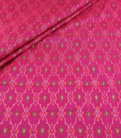 French Rose Pink Soft Silk-Cotton Handwoven Ikkat Fabric