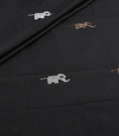 Black Soft CottonSilk Jamdani Woven Design Flowy HandLoom Fabric