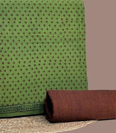 Green – 2pc Bagh Handblock Top and Handloom Bottom Cotton Fabric Set