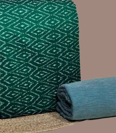 Green – 2pc Pure Soft Cotton Top and Handloom Cotton Bottom Fabric Set