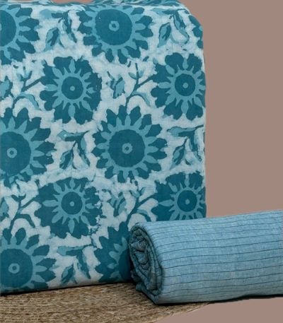 2pc Bagru HandCrafted Top and Handloom Soft Cotton Bottom Fabric Set