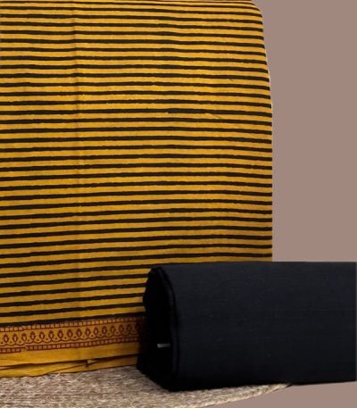 Yellow – 2pc Bagh Handblock Top and Handloom Bottom Cotton Fabric Set