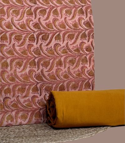 Pink – 2pc Bagru Handblock Top and Plain Dyed Bottom Cotton Fabric Set
