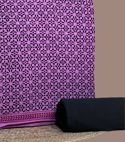 Purple – 2pc Bagh Handblock Top and Plain Dyed Bottom Cotton Fabric Set